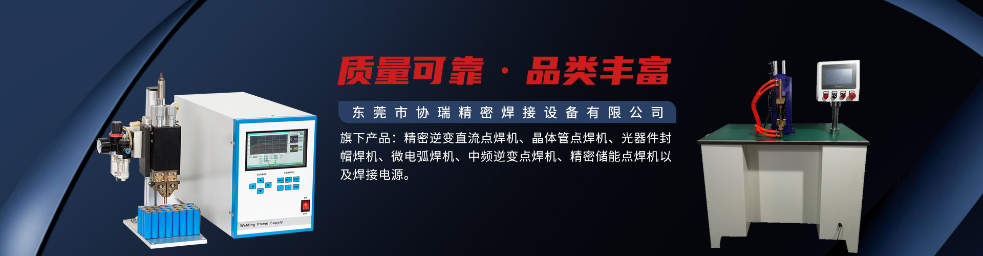 東莞市協瑞精密焊接設備有限公司始于2009年,引進日本電子技術和留學人才,致力于國內高端精密焊接裝備的研發、制造,不間斷地開發各種適合于用戶需求的新產品,成立10多年來公司竭誠為廣大用戶提供更多優質產品服務。 旗下產品: 精密逆變直流點焊機、晶體管式點焊機、光器件封帽焊機、微電弧焊機、中頻逆變點焊機、精密儲能點焊機以及高品質焊接電源,定制各式專業焊接設備。